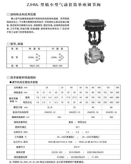 ZJHMp型精小型氣動(dòng)套筒單座調(diào)節(jié)閥