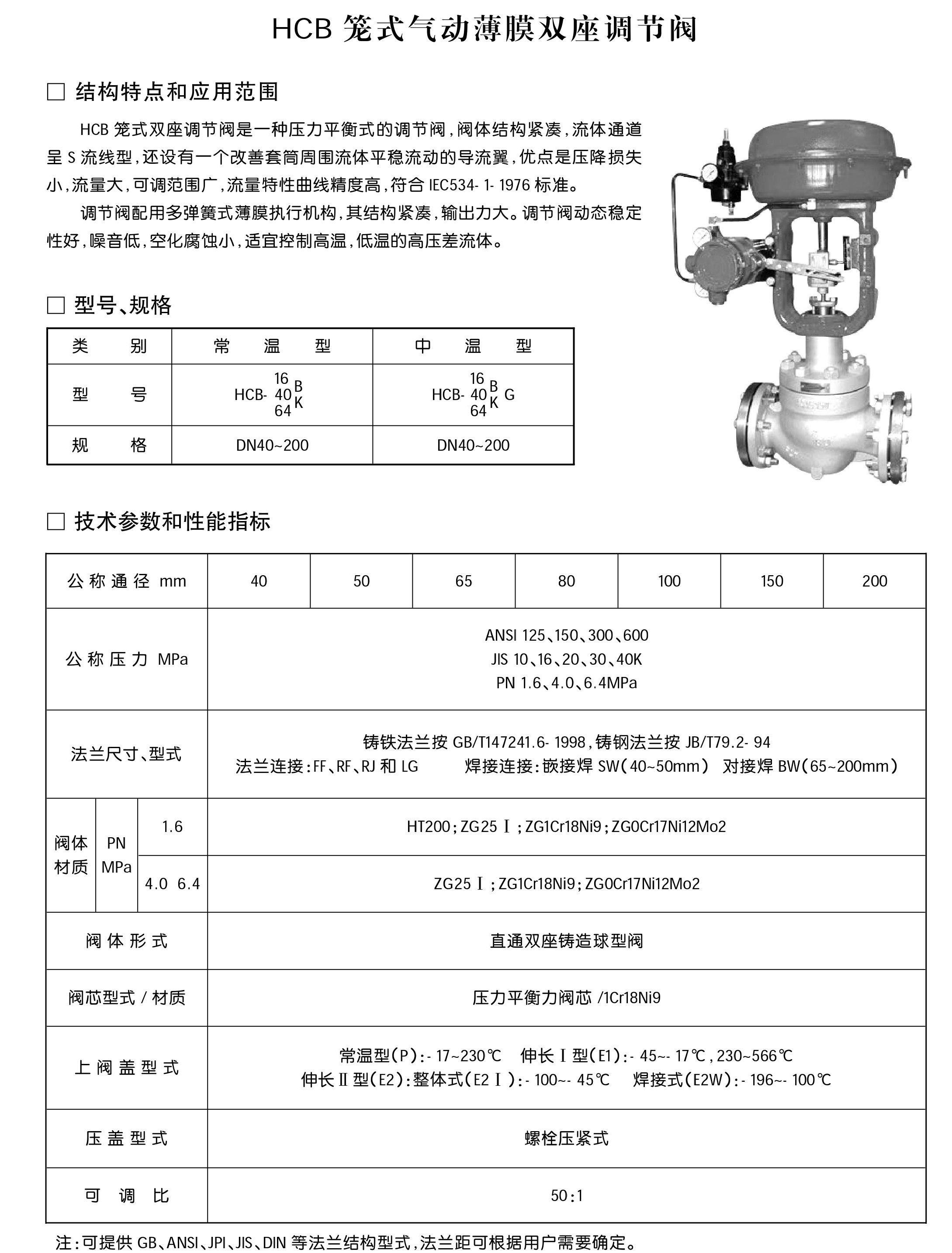 HCB籠式氣動(dòng)薄膜雙座調(diào)節(jié)閥