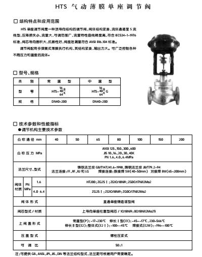 HTS氣動(dòng)薄膜單座調(diào)節(jié)閥