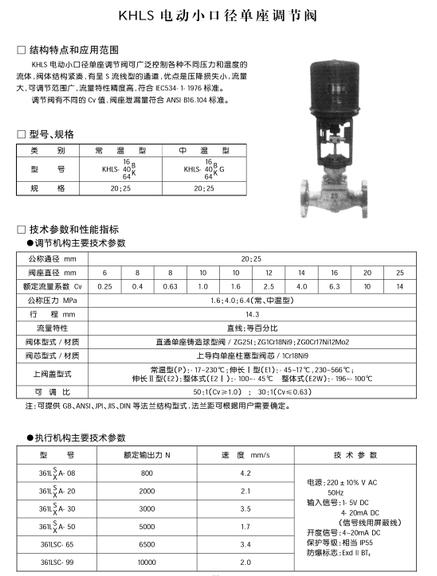 KHLS電動(dòng)小口徑單座調(diào)節(jié)閥