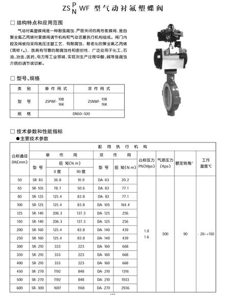 ZSP\NWF型氣動(dòng)襯氟塑蝶閥